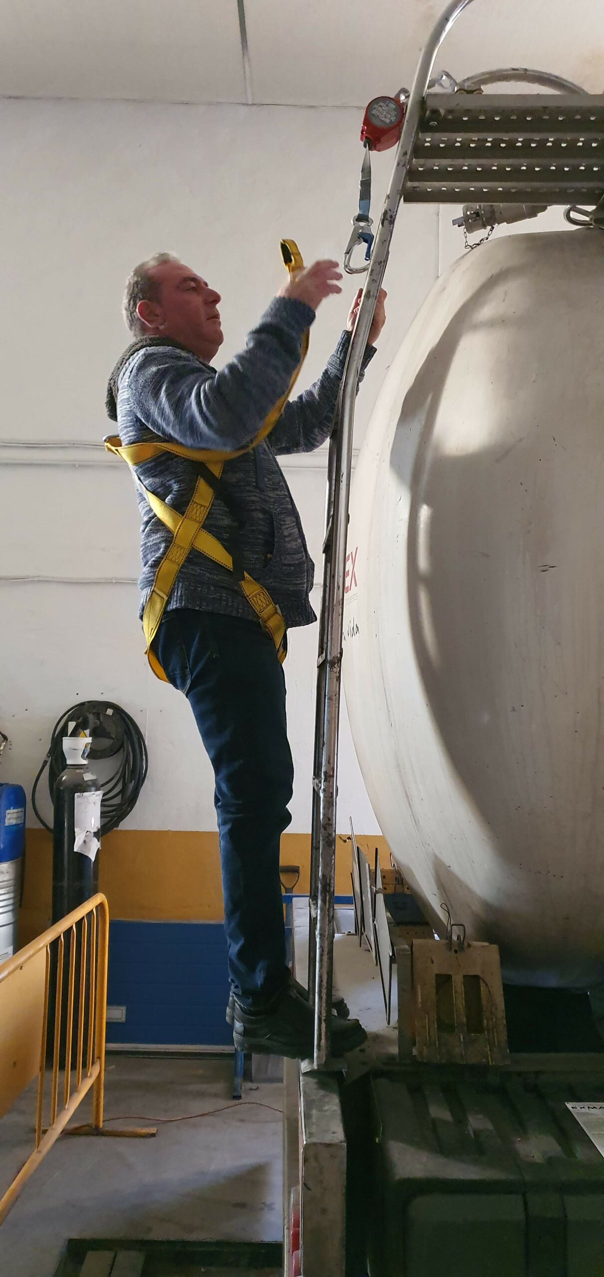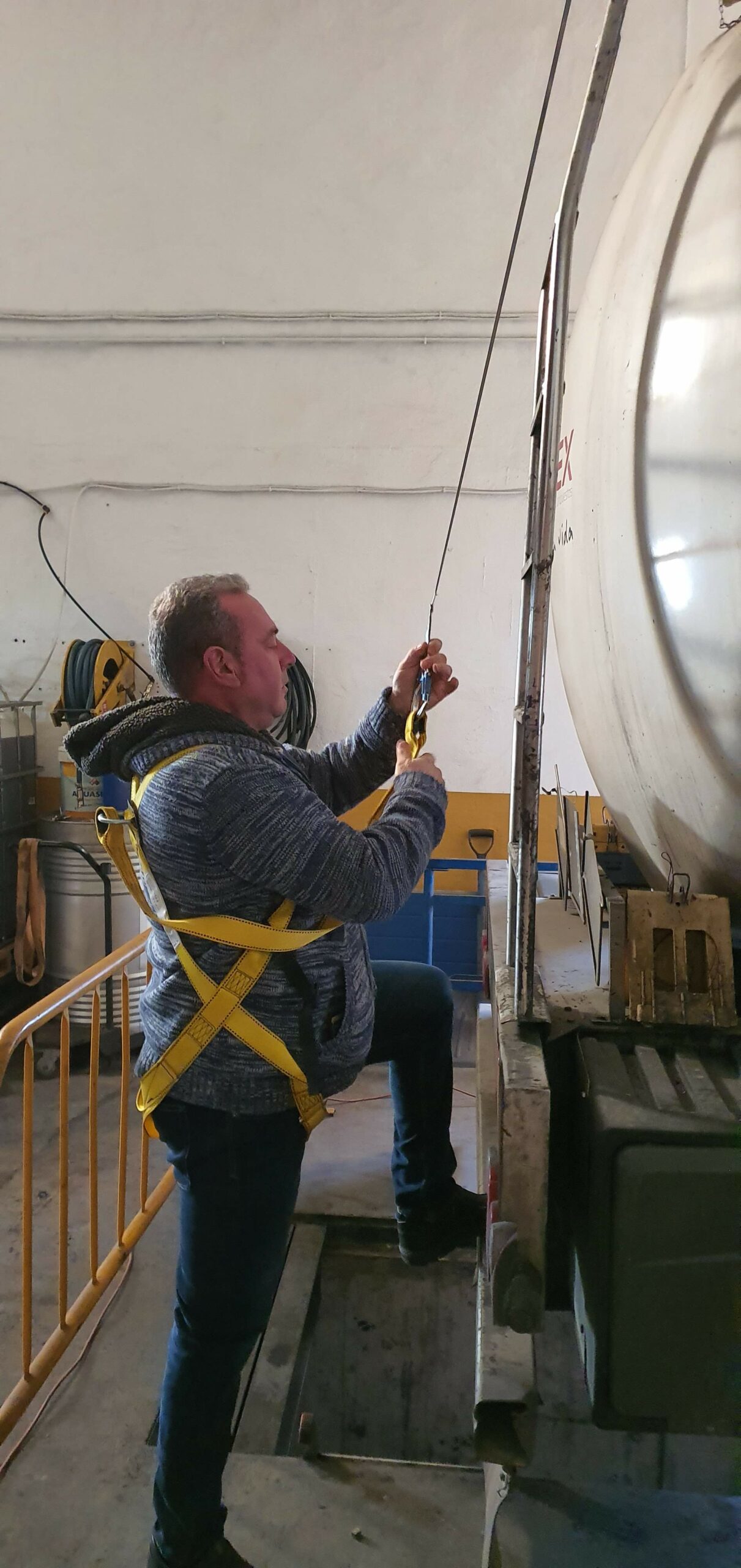 Con el objetivo de mejorar la seguridad de todos los conductores de CQ, se montan líneas de vida en la parte alta de las cisternas, de manera que los conductores antes de subir a realizar trabajos en altura puedan asegurarse desde el suelo al retráctil de la línea de vida, a través de su arnés de seguridad.